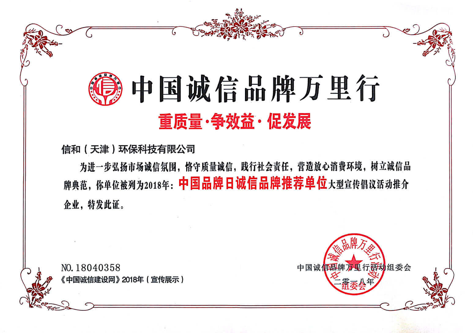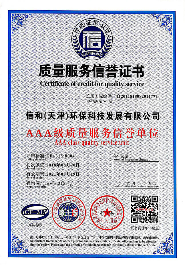 質(zhì)量服務(wù)信譽證書